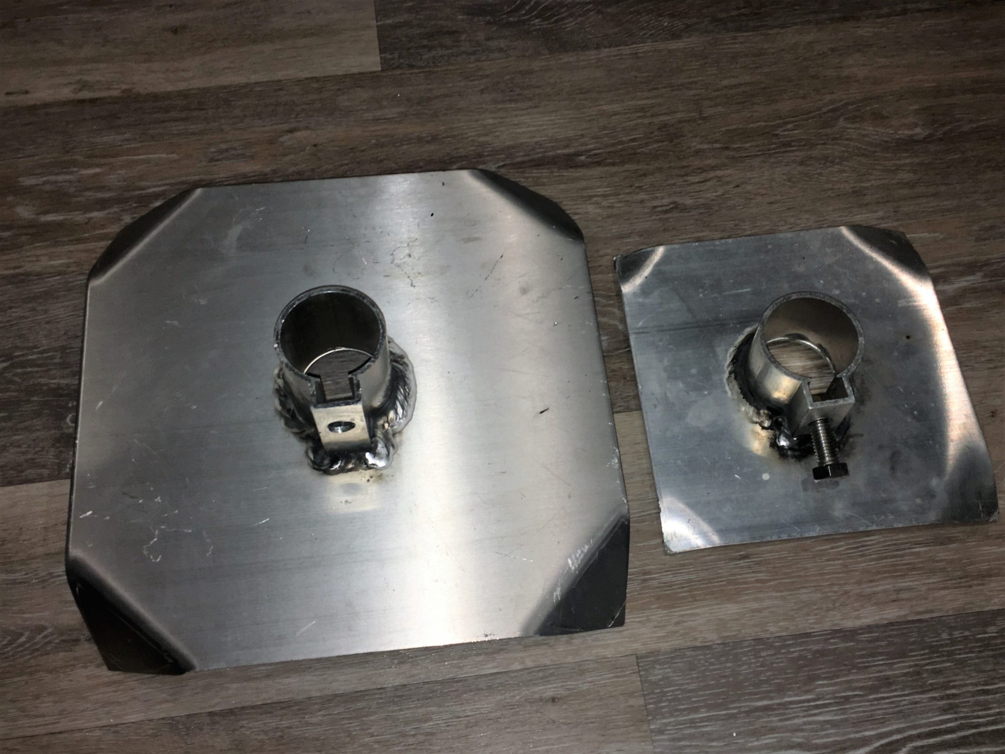 These 8″ x 8″ bottom plates are great for set in docks with a sandy bottom or with screw in augers where the ground is just a little soft and you want something on the surface to keep your pole from sinking.  They slide over both our steel and aluminum dock poles and lock in place by a bolt.